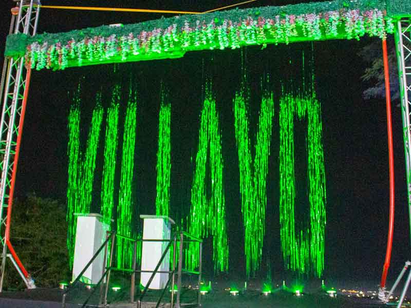La llamada cortina de agua sorprendió a los asistentes en el Mirador del Cerro El Redentor con un efecto visual que acompañó la inauguración de la iluminación navideña en la capital del Meta.