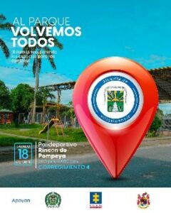 Como parte del compromiso de la Alcaldía de Villavicencio por recuperar los espacios públicos como escenarios de convivencia, participación ciudadana y fortalecimiento del tejido social, este sábado 18 de octubre, desde las 2:00 de la tarde, la estrategia “Al Parque Volvemos Todos” llegará al polideportivo del barrio Rincón de Pompeya, en el corregimiento cuatro de esta capital.