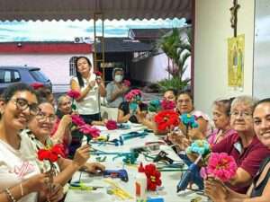 Mujeres de la comuna 1 potencian su creatividad en taller de flores navideñas