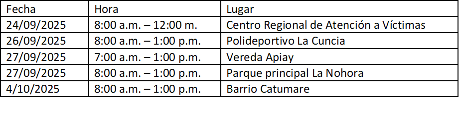 El Centro Regional de Atención a Víctimas, La Nohora, La Cuncia, Apiay y Catumare serán los puntos donde la Agencia Pública de Empleo (APE) de Villavicencio acercará su oferta institucional los días 24, 26 y 27 de septiembre, y el 4 de octubre.